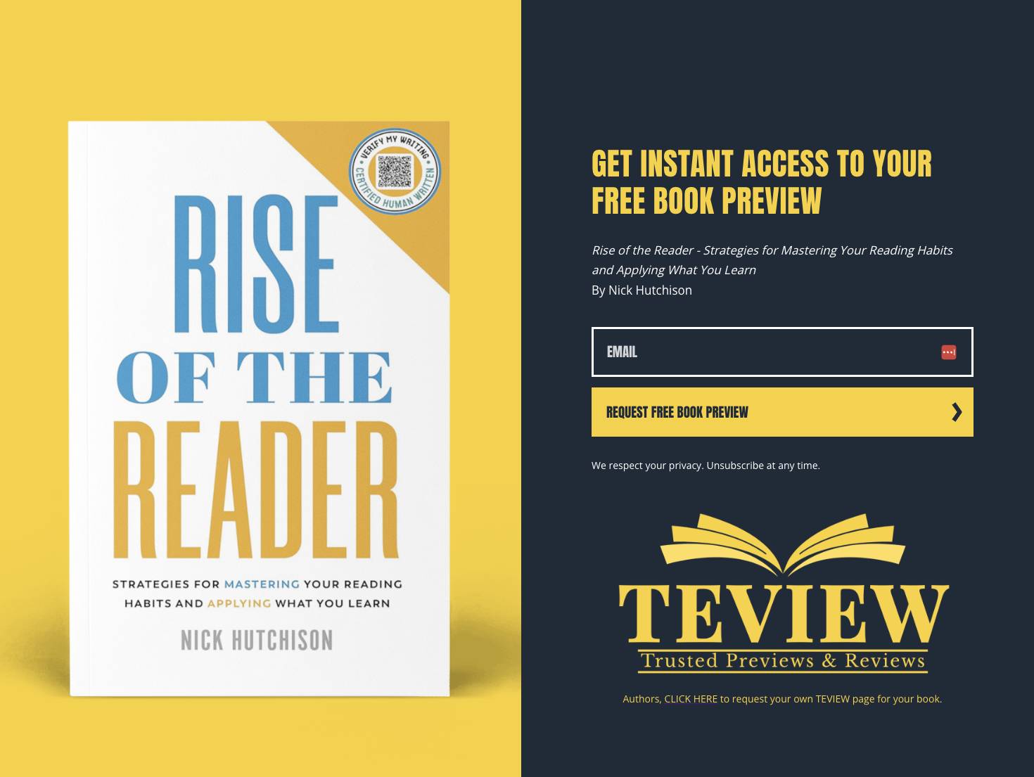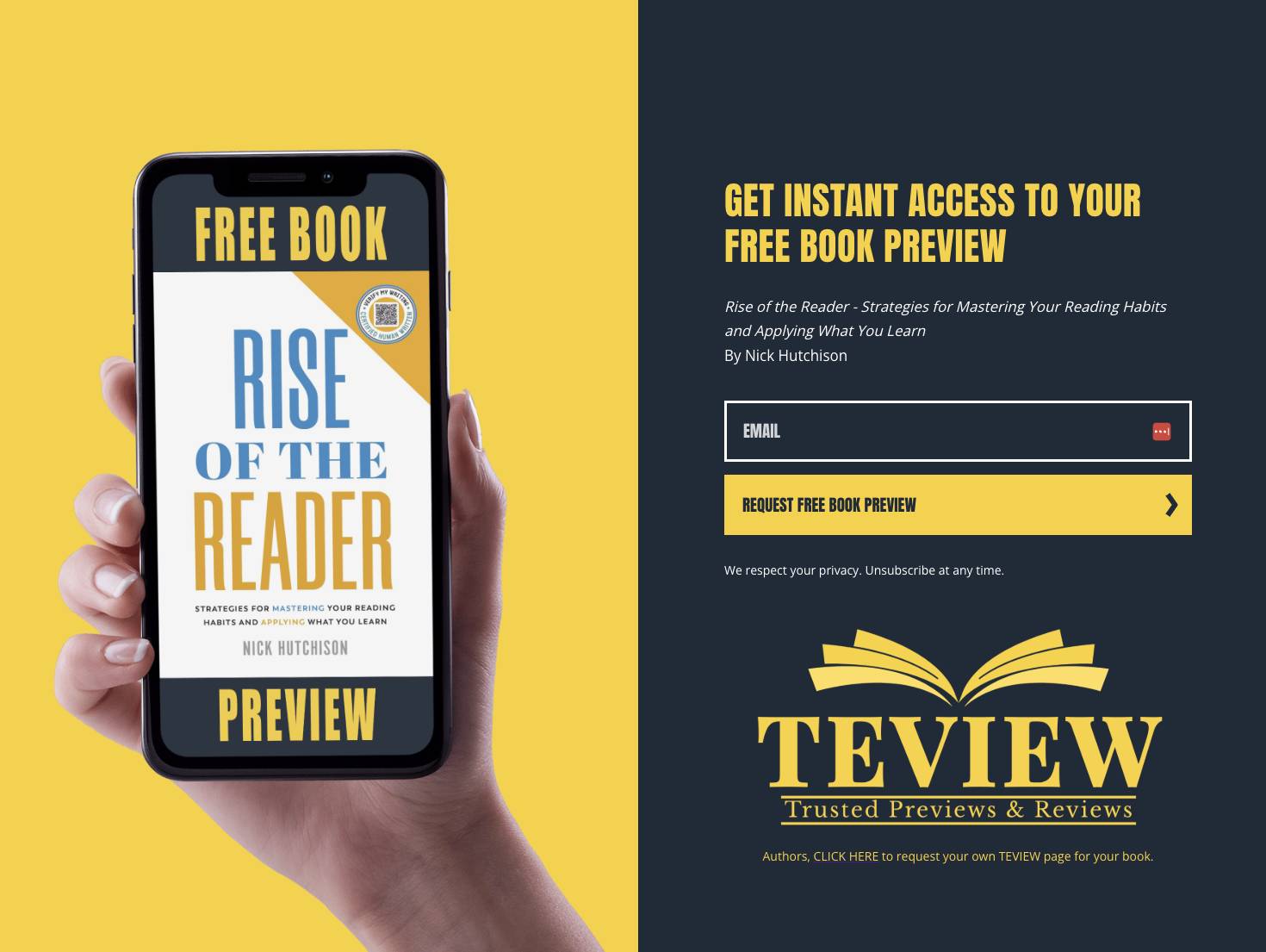 Teview partners with authors to share free previews of their books with readers.